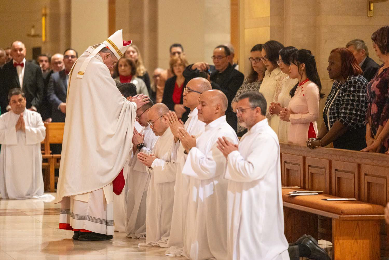 HOUSTON — Forty men from 30 area churches were ordained as permanent deacons, including two medical doctors, a pair of brothers and one who works at NASA. Daniel Cardinal DiNardo ordained two groups of deacons at separate Masses on the evening of Feb. 14 and the morning of Feb. 15 at the Co-Cathedral of the Sacred Heart in downtown Houston.